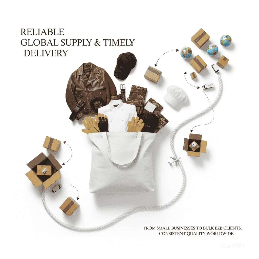 Trusted manufacturer and trader of premium workwear, leather goods, and accessories — delivering quality and reliability worldwide.